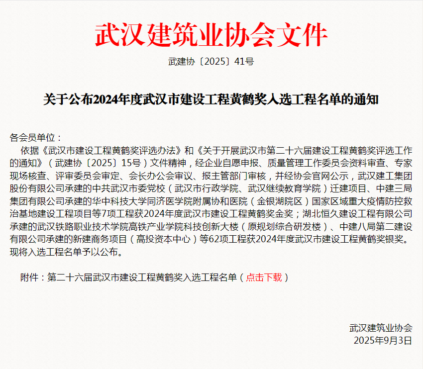 - 2025-09-10再添8項!湖北省建工第五建設(shè)有限公司榮譽持續(xù)刷新[圖]